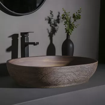 Brown Ceramic Oval Vessel Sink - Above Counter Bathroom Vanity Basin
